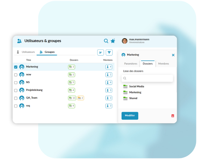 Vous définissez les politiques de sécurité, la structure des dossiers et – si vous le souhaitez – le design selon l’identité visuelle de votre entreprise.